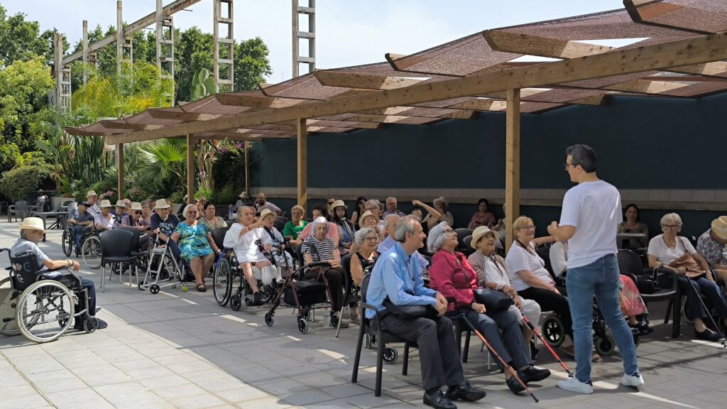 Por la tarde, alrededor de las 16:00 h, el patio volvió a convertirse en punto de encuentro, esta vez con el humor como protagonista. El comediante Víctor Parrado ofreció un monólogo dirigido a pacientes y familiares que supo ganarse al público desde el primer momento, generando un ambiente de alegría y desconexión.